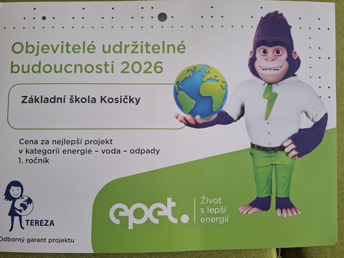 ⚡ Náš eko tým získal ocenění za jeden z nejlepších projektů mezi školami z celé České republiky v soutěži Objevitelé udržitelné budoucnosti.